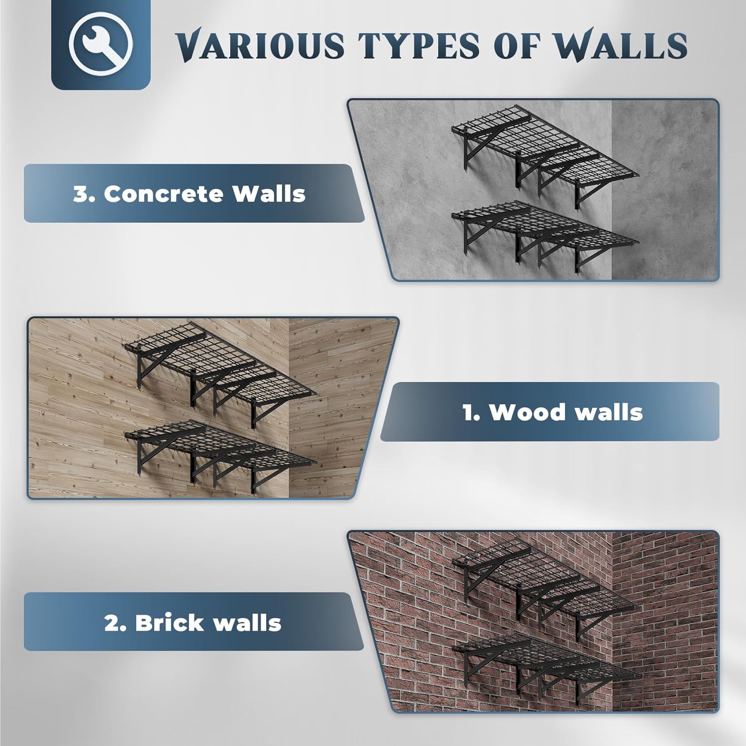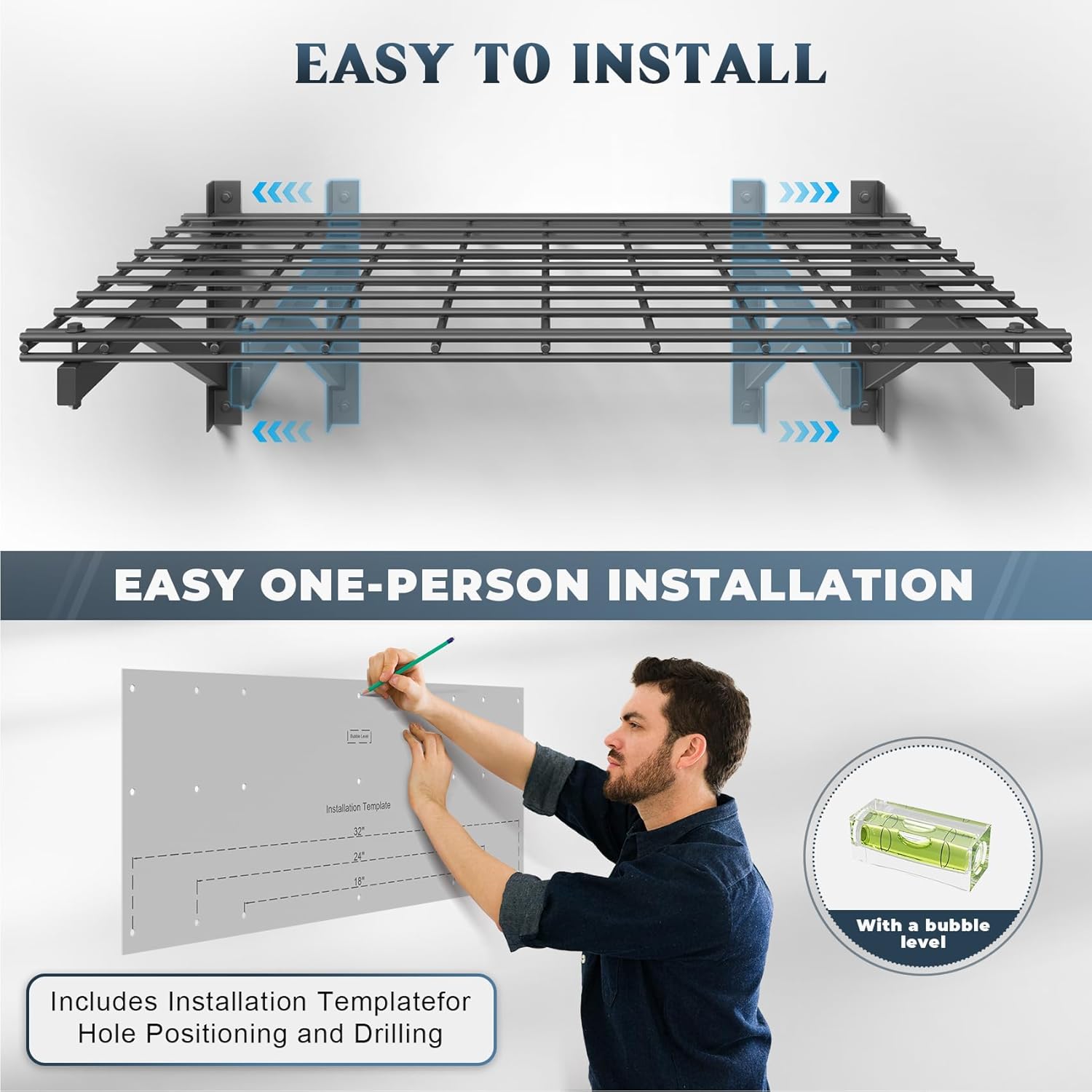 4 Pack Heavy Duty Garage Wall Shelving Set (2x3ft), Wall Mounted Garage Shelves 1000lbs Capacity, 24"x72" Shelf Storage Rack Floating Shelves, Black