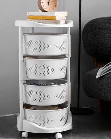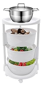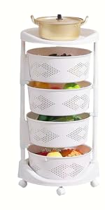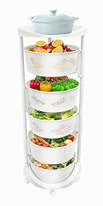 5 Tier Kitchen Storage Cart Multi-Layer Storage Basket with Wheels Fruit Vegetable Storage Shelves Racks Rolling Storage Cart for Kitchen Living Room Bedroom, White (5 Tier)