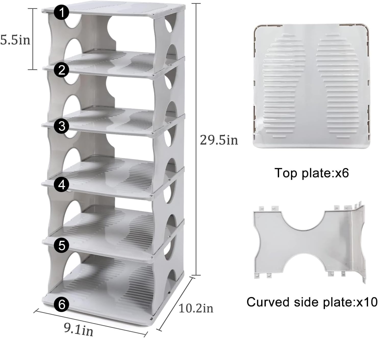 6-Tier Shoe Rack, Stackable Storage Organizer for Bedroom Entry, Adjustable Rack, Shoe Slots Shelf, Easy Tower Rack, Grey