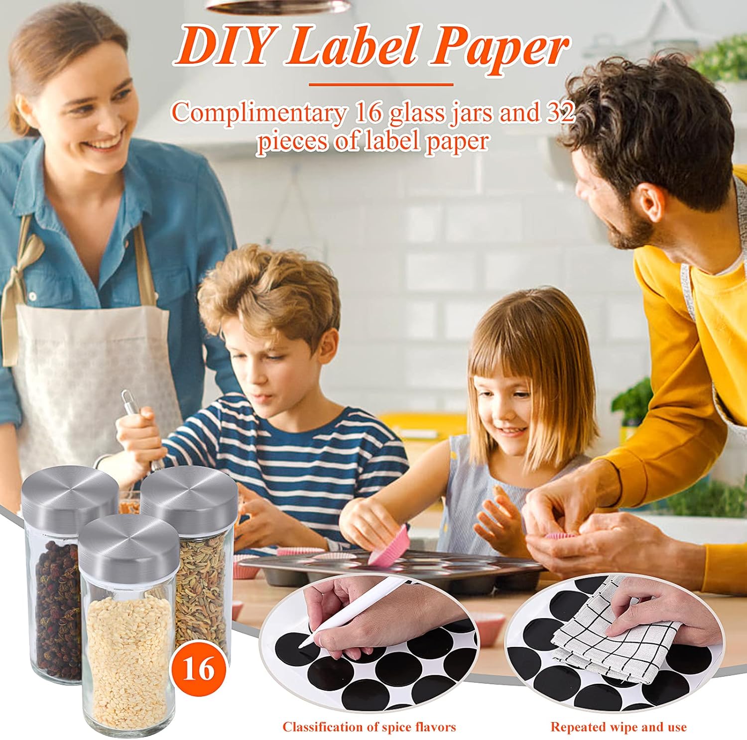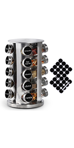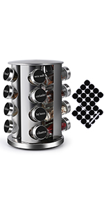 DOUBLE 2 C Revolving Countertop Spice Rack Stainless Steel Seasoning Storage Organization,Spice Carousel Tower for Kitchen Set of 16 Jars (16Jars)