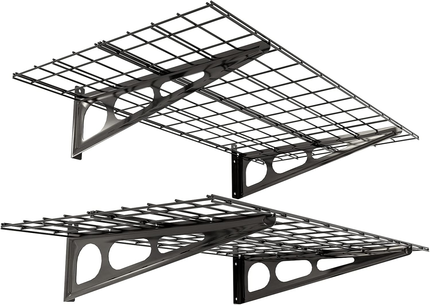 FLEXIMOUNTS 2-Pack 2x6ft Garage Shelving 24-inch-by-72-inch Wall Shelf Garage Storage Rack Floating Shelves, Black