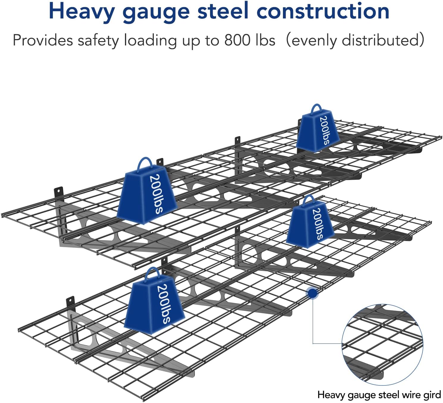 Heavy gauge steel construction provides safety loading up to 800lbs total.