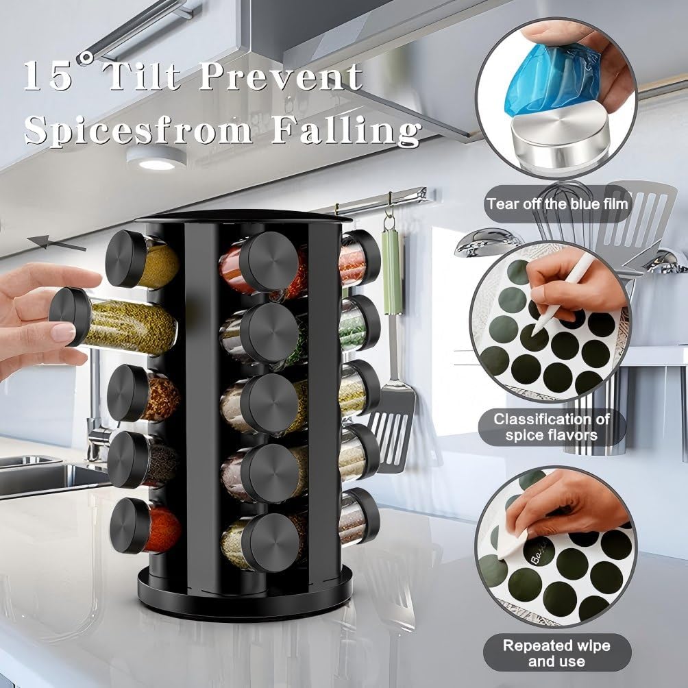 Rotating Spice Rack Organizer for Cabinet, Spice Racks Storage with 20 Jars, Spinning Spice rack for Kitchen Countertop, Spice Holder,Seasoing Storage Racks,Black