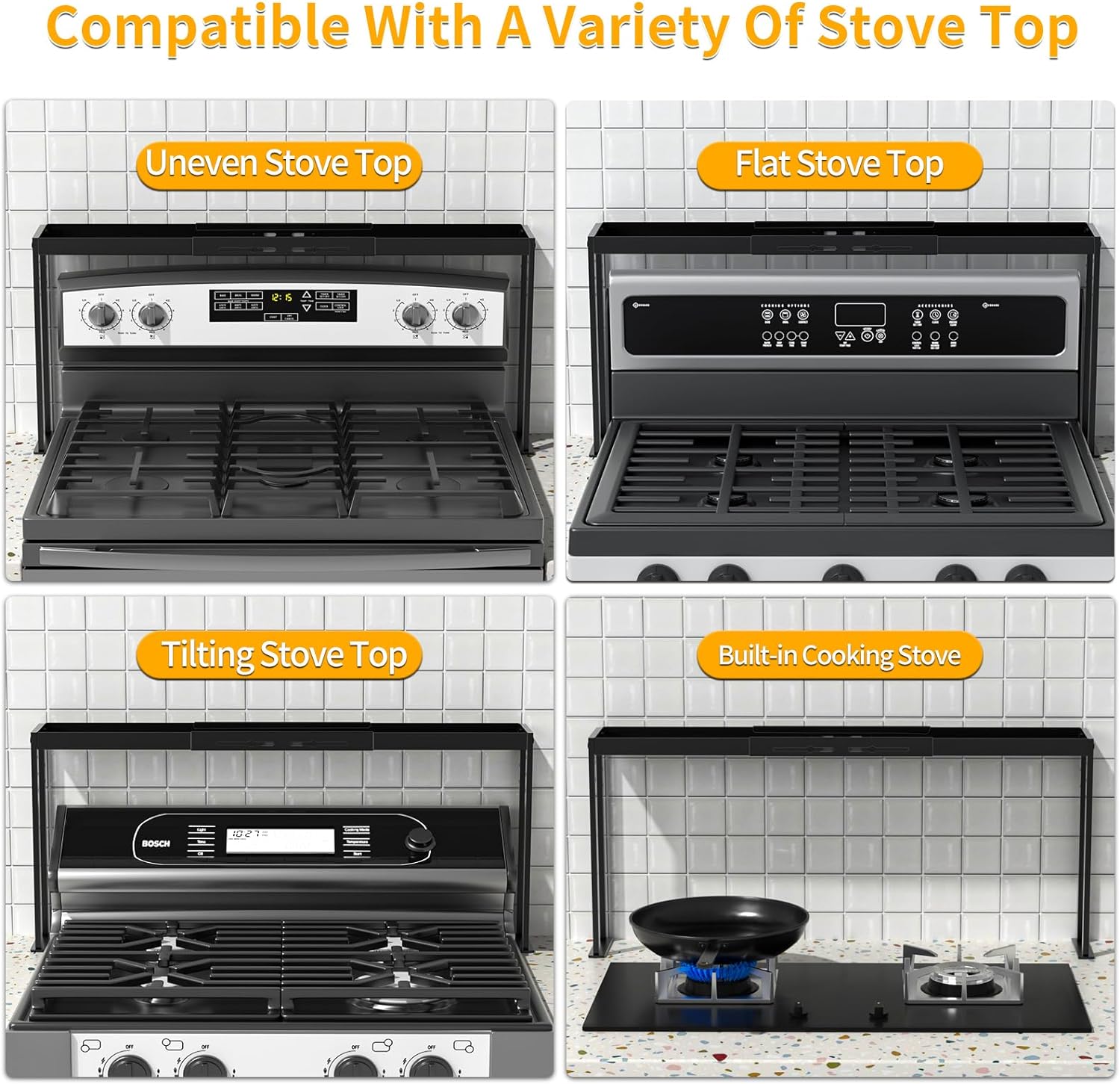 Spice Rack Shelf for Kitchen Stove, Adjustable 27 to 33 Inch Spice Rack Organizer, 4 Level Adjustable Height Stove Top Shelf for Kitchen, Over the Stove Shelf for Curved Stove, Black