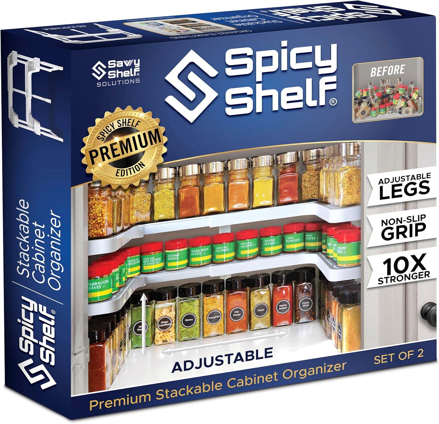 Spicy Shelf 3.0 - Expandable 2 Tiered Spice Rack Organizer for Cabinet & Pantry - Kitchen Seasoning Organizer - Cabinet Spice Racks for Inside Cabinets (Spicy Shelf Premium) - Home Organization
