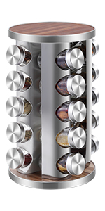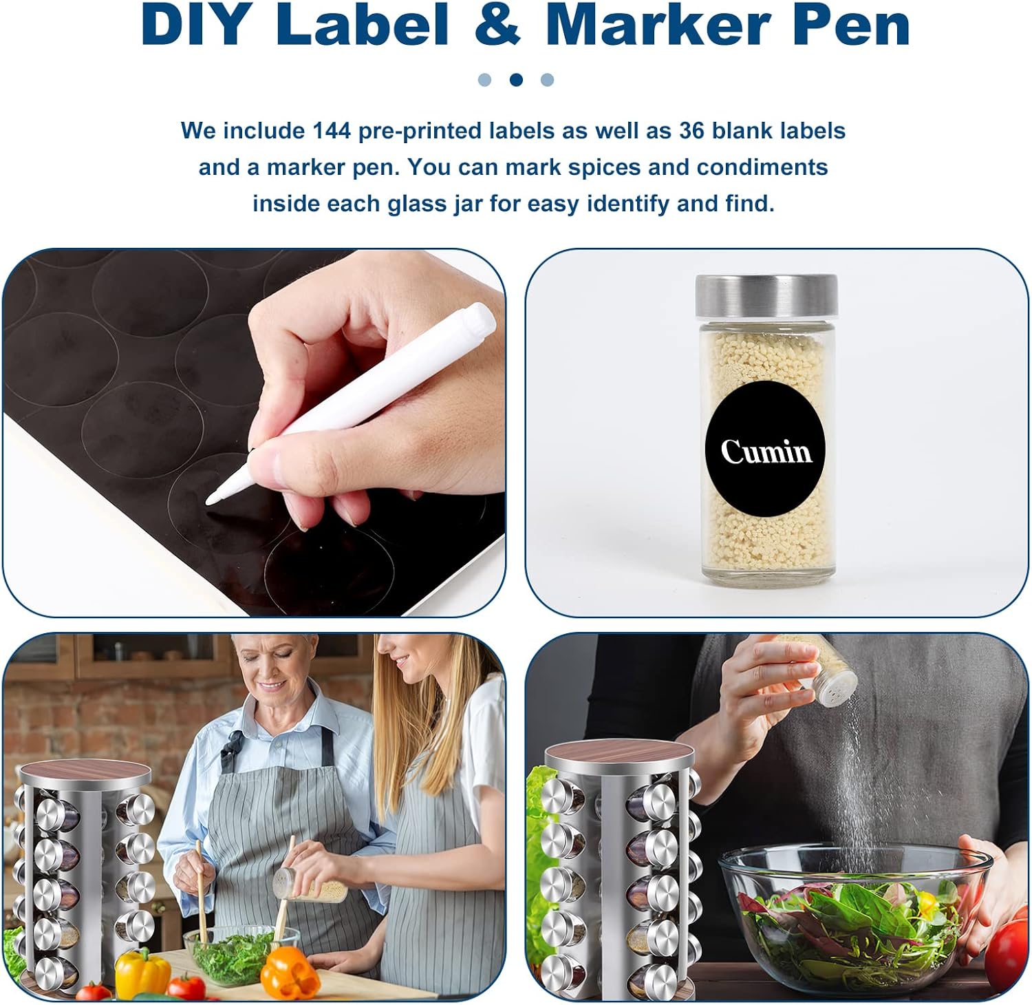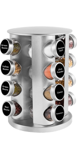 WAYDA Rotating Spice Rack Organizer, 20 Jars Revolving Seasoning Organizer for Cabinet, Stainless Steel Spice Tower for Kitchen Countertop with Reuseable Labels and Funnel