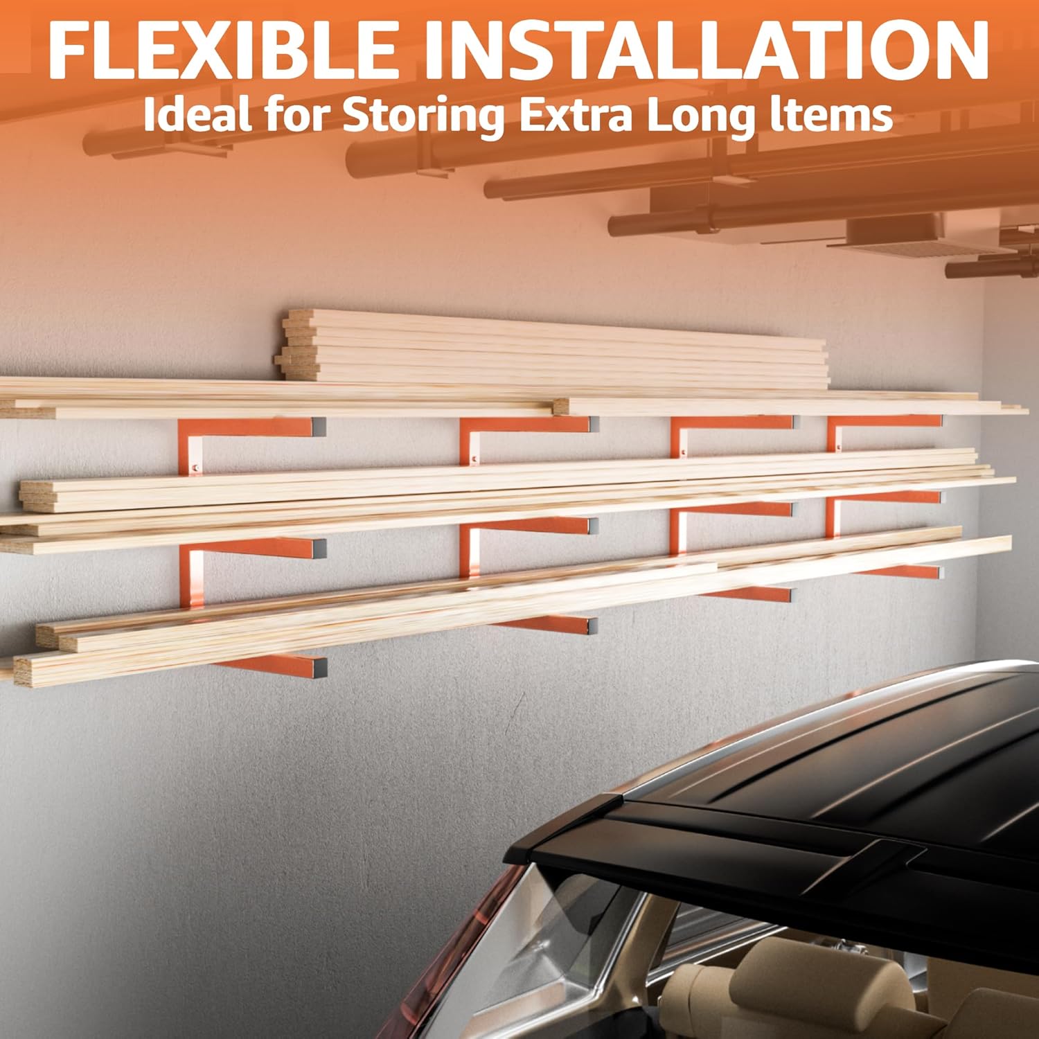 YYR Wood Organizer and Lumber Storage Rack Wall Mount, Heavy Duty Metal Shelf with 6-Level Holds Up 1200 LBS, Indoor & Outdoor Use - Orange