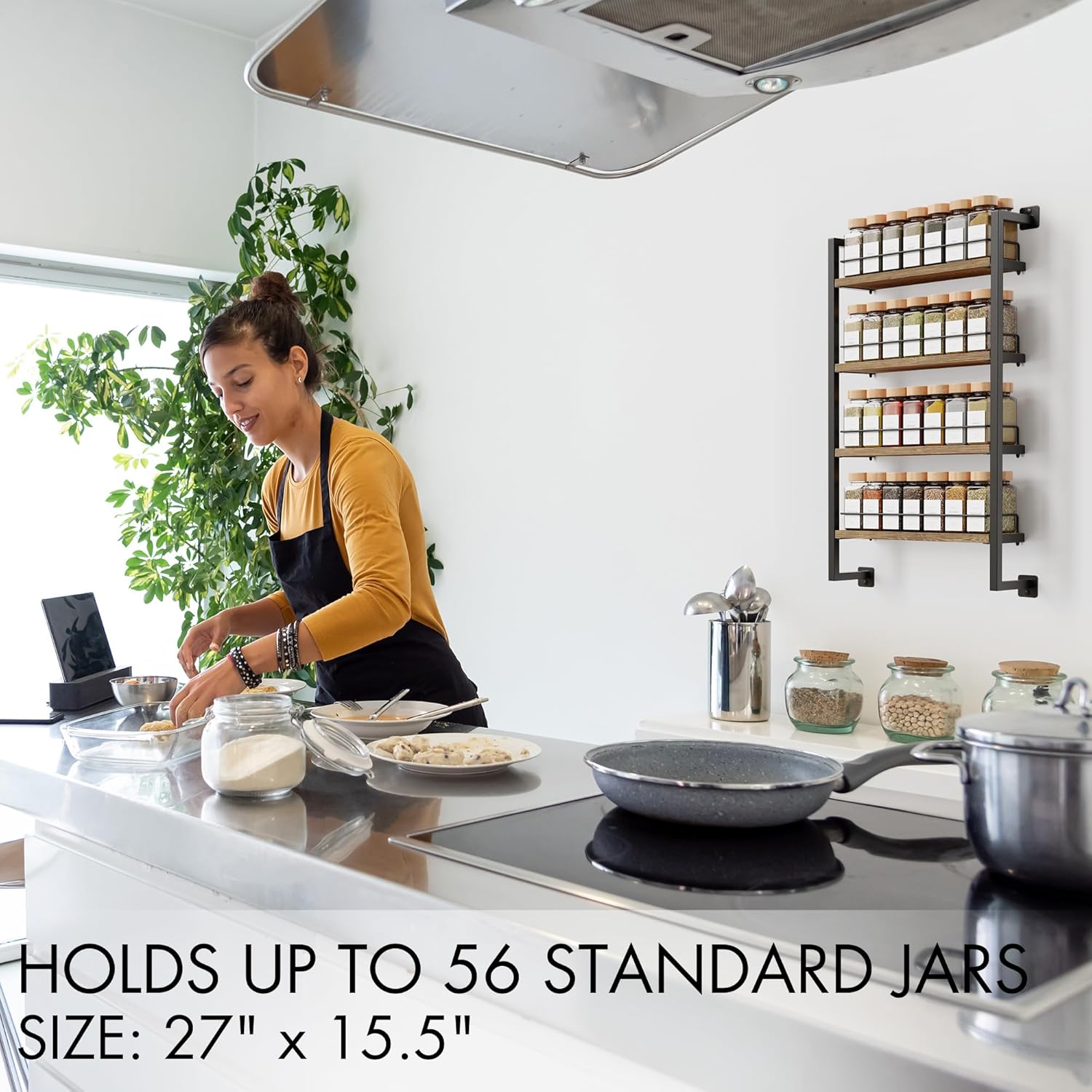 ZICOTO Space Saving Spice Rack Organizer Shelf for Wall Mount - Easy To Install Modern Hanging Racks For up to 56 Jars - Perfect Seasoning Organizer For Your Kitchen